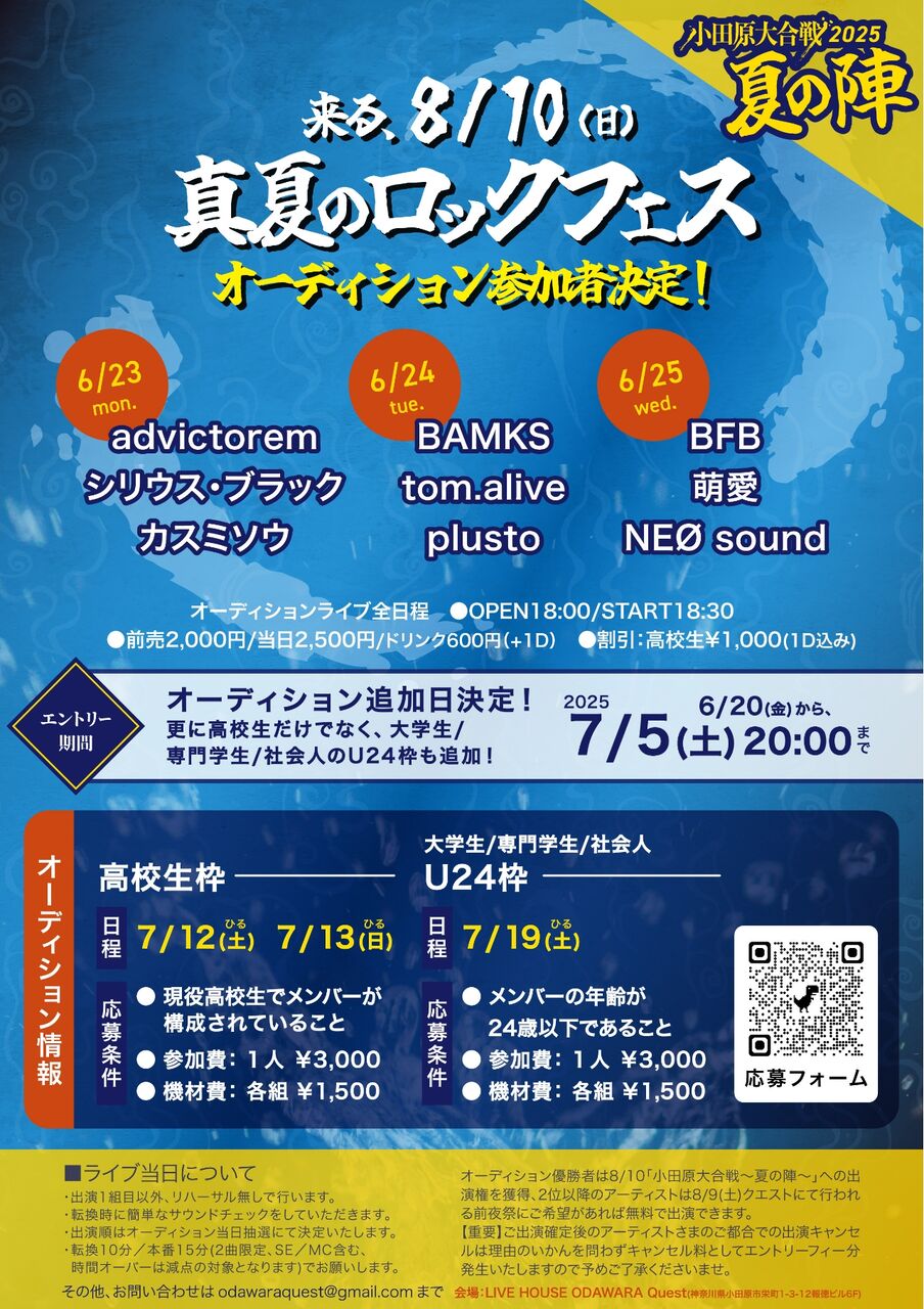 ✅ 小田原大合戦 2025 夏の陣 / オーディションライブ 敗者復活戦